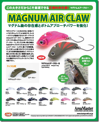 ルアー ラッキークラフトルアー ラッキークラフト:ボトム用バイブ『エアークロー』のサイズアップモデル『マグナムエアークロー』が発売されます ルアー 2013.11.27 ラッキークラフトより、ボトム用バイブ『エアークロー』のサイズアップモデル『マグナムエアークロー』が発売されます。 131105.jpg (JPEG 画像, 534×660 px)