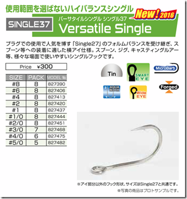 アクセサリールアー アクセサリーカツイチルアー カツイチ:ルアー用シングルフック『バーサタイルシングル37』『フィネスシングル32』『プラッギンシングル#3/0,#4/0,#5/0』『エリアフックタイプIX フロリア AH-9 #14』が発売されます アクセサリー 2016.03.23 カツイチより、ルアー用シングルフック『バーサタイルシングル37』『フィネスシングル32』『エリアフックタイプIX フロリア AH-9 #14』が発売されます。 バーサタイルシングル 価格:¥300 フィネスシングル 価格:¥300 プラッギンシングル 価格:¥300 エリアフックタイプIX フロリア AH-9 #14サイズが追加されます。 価格:¥300 KATSUICHI Trout fook