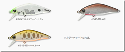 アムズデザインの渓流用シンキングミノー『イッセン 45S』『イッセン 45S マックス』『スカリ 50SS』『スカリ 50SS ディープ』に新色が追加されます。