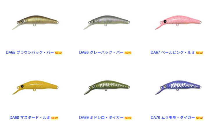 ハルシオンシステムのトラウトエリア用シンキングミノー『DENS 60 AREA RhyzmoTune』に新色が追加されます。
