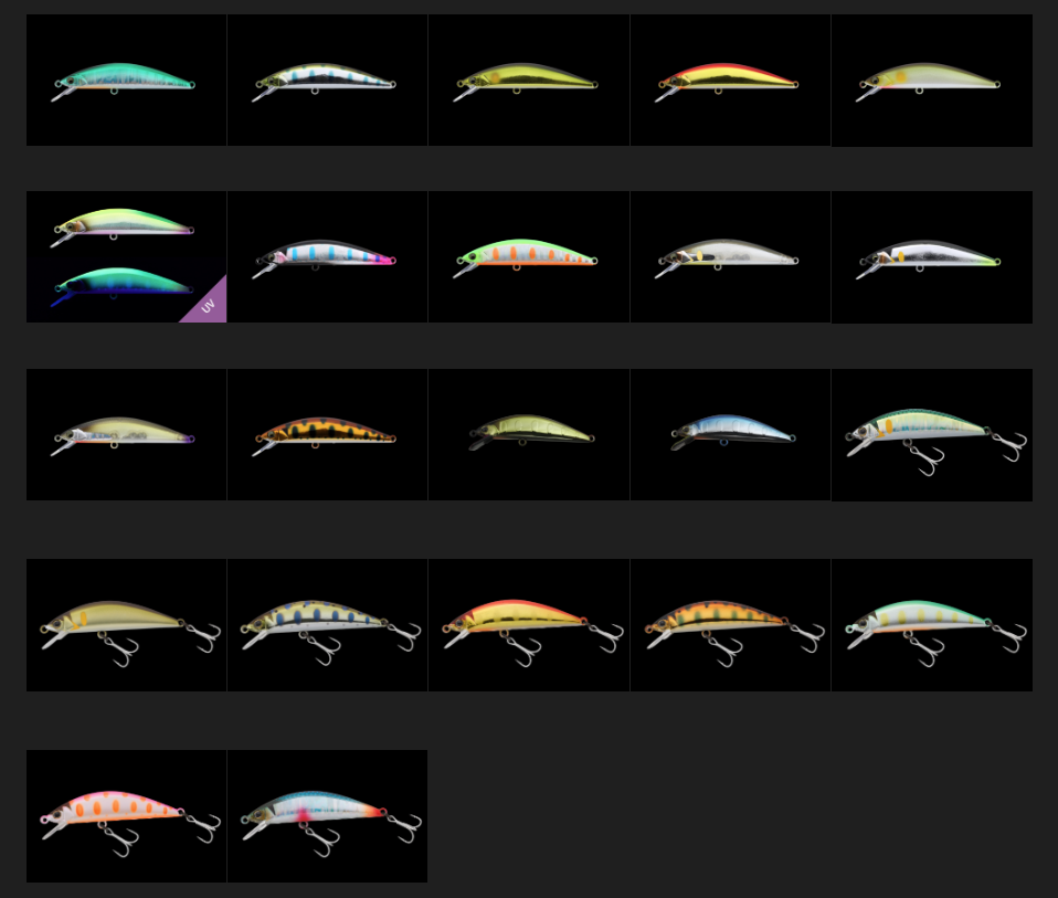 Name Weight Length Hook Size Ring Size Price Tricoroll 47HW 3.2g 47mm ST26TN #12 #1 ¥1,606 Tricoroll 55HW 4.4g 55mm ST26TN #12 #2 ¥1,606 Tricoroll 67HW 6.3g 67mm トラウティントレブル #8 #2 ¥1,628