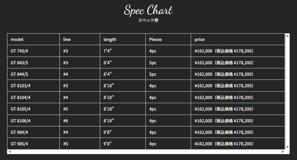 推奨ラインウェイト:115-125グレインGT 8103/4 8’ 10” 3 wt 4 pc