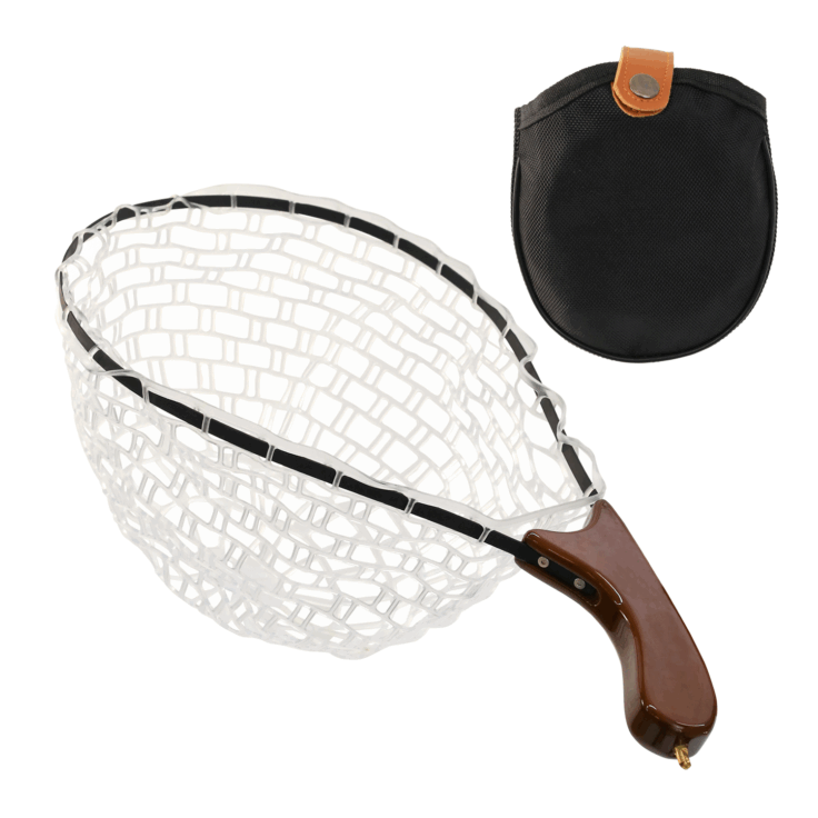 魚体に傷つけにくいラーネット使用でウッド調グリップを採用