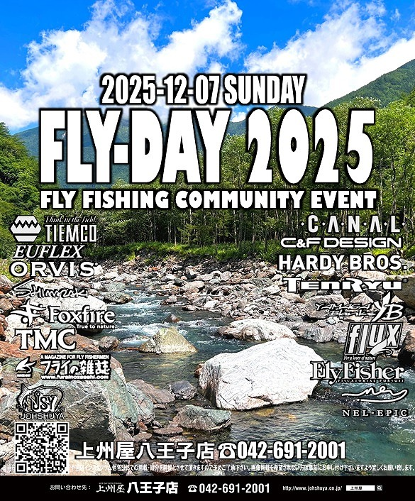 毎年12月第一日曜日に開催している八王子店恒例のフライフィッシングイベント「ティムコ祭り&キャナル祭り」ですが、2025年は大幅に拡大&パワーUPして「FLY-DAY 2025」としてリニューアル開催いたします!!