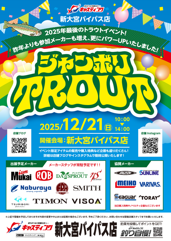 【新大宮バイパス店】ジャンボリTROUTinさいたま – イベント予定 [釣具のキャスティング]