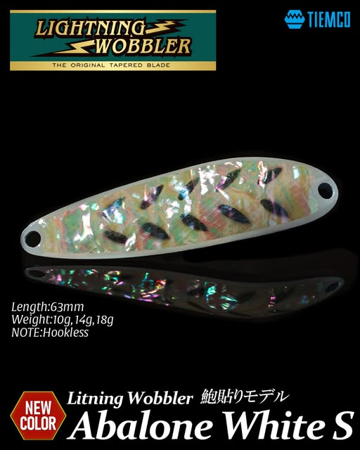 ティムコのトラウト用スプーン『ライトニングウォブラー あわび貼りモデル 10/14/18』に新色『アバロンホワイトSクロハハハ(裏面シルバー)』が追加されます。