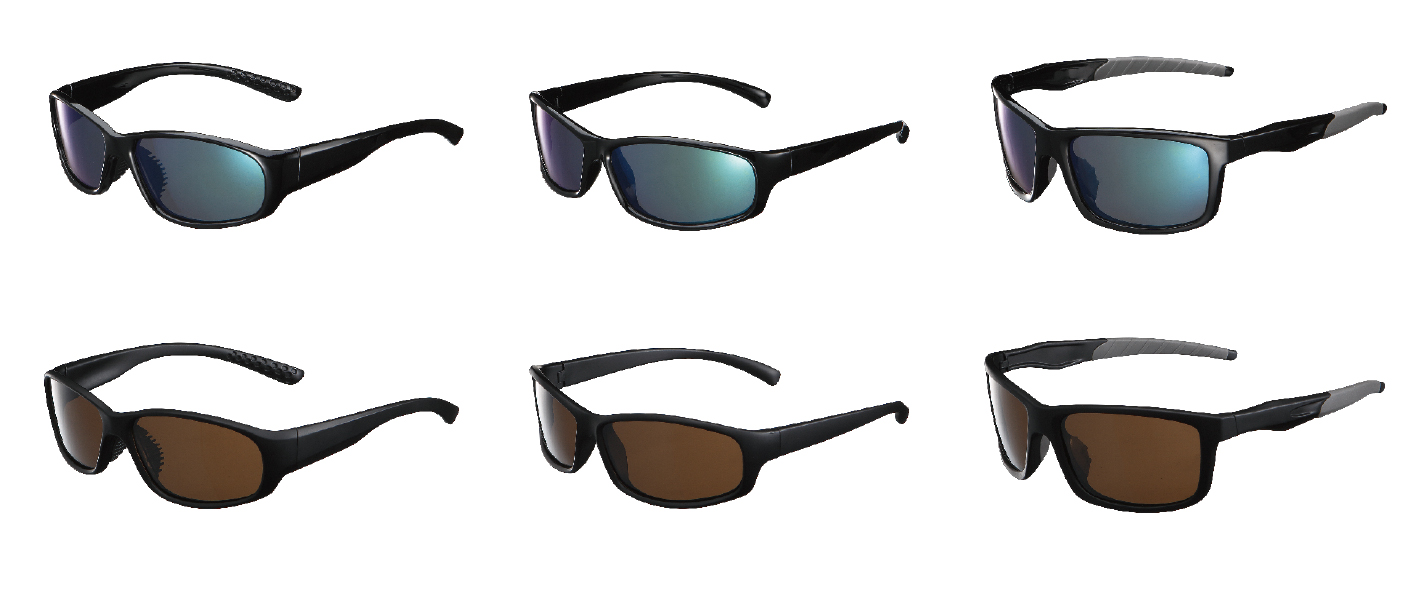 2色のフレームパターンに、それぞれ3色の偏光レンズからお選びいただけます。