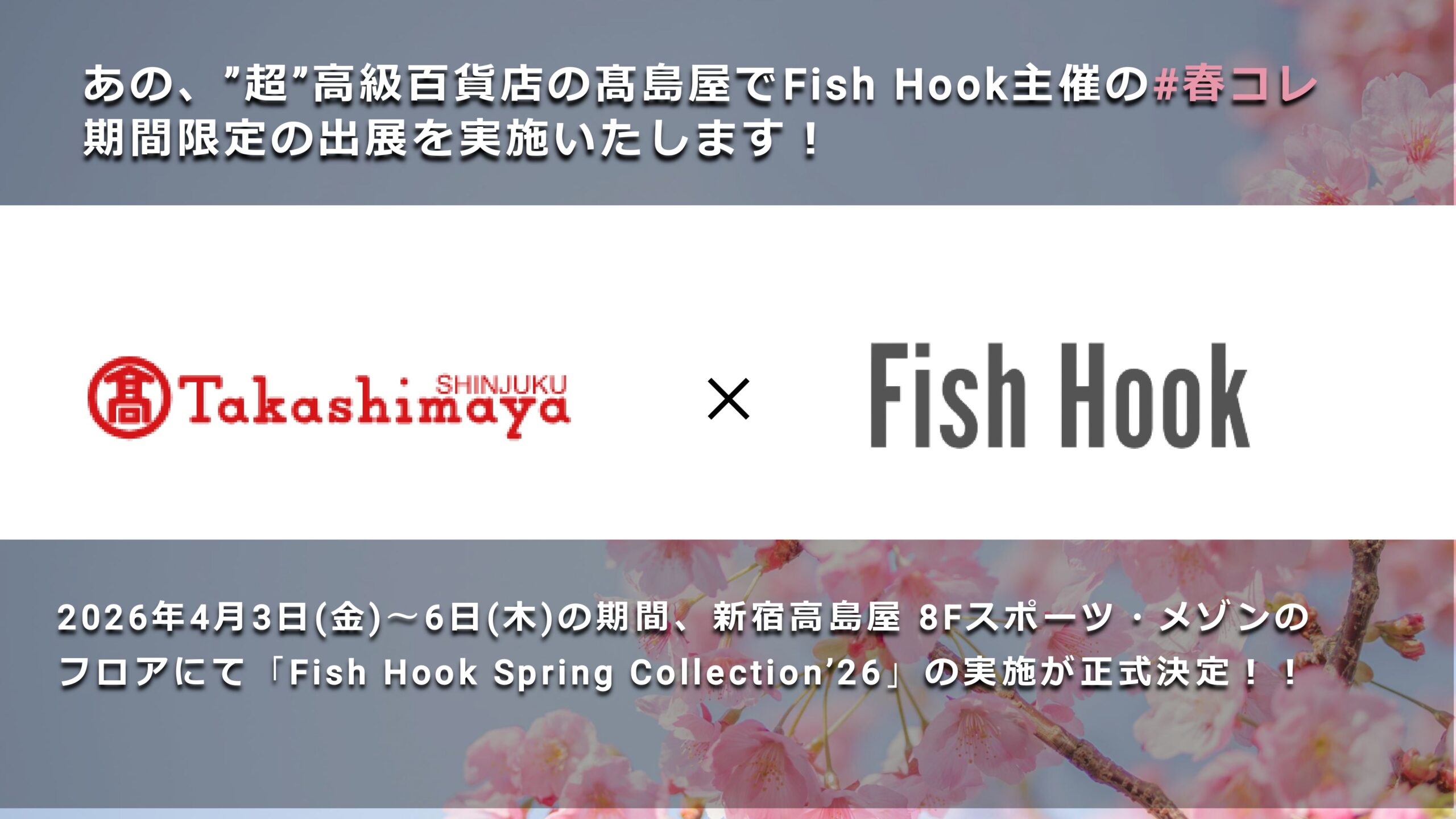 4/3~6 に東京都新宿区 新宿高島屋タイムズスクエア 8階 スポーツ・メゾンにて『Fish Hook Spring Collection’26』が開催されます。
