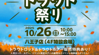 イベント情報 イベント情報:10/26 キャスティング八王子店にて『エリアトラウト祭り』が開催されます 10/26 キャスティング八王子店にて『エリアトラウト祭り』が開催されます。イベント限定品の即売&注目トラウトアイテムの展示受注説明会です!多数のメーカーと直接お話できるチャンス!なんでも聞いてエリアトラウトを楽しもう!〈開催日時〉2025... 2025.10.18 イベント情報